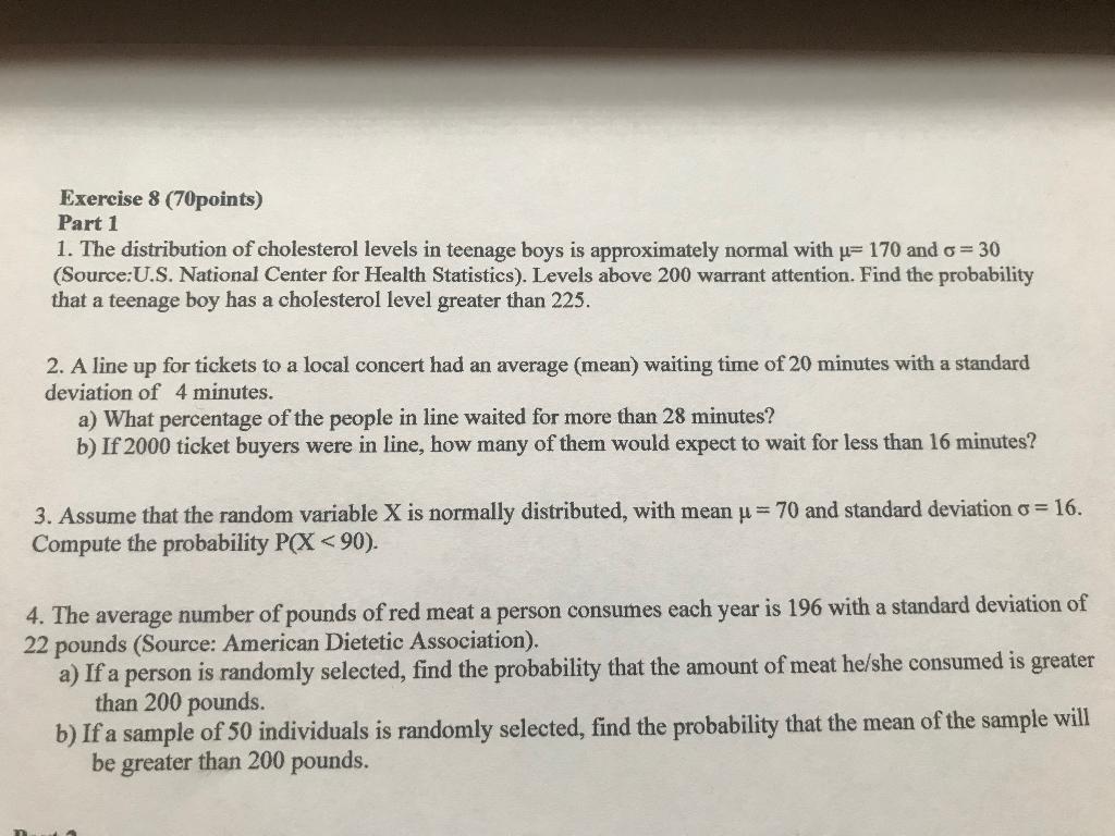 Solved 8 The Distribution Of Cholesterol Levels In Teenage Chegg Com